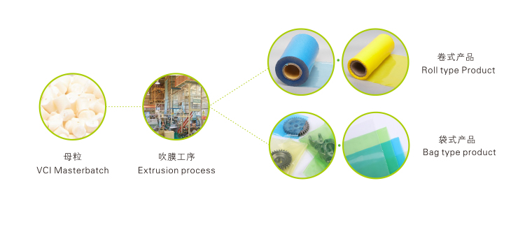 3.在生產(chǎn)氣相防銹塑料膜類產(chǎn)品過程中可根據(jù)需要添加色母、抗氧化劑、阻燃劑等功能母粒。